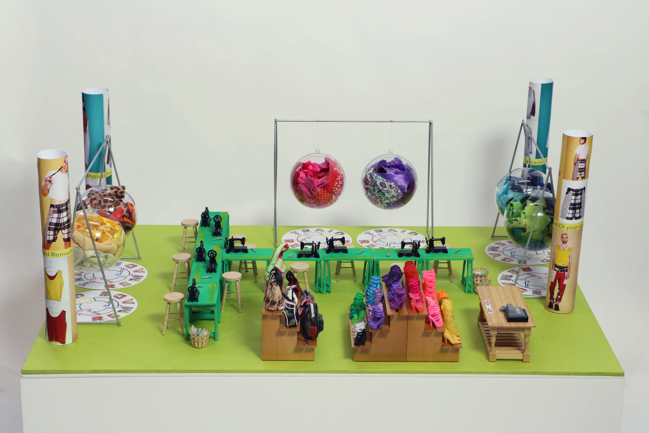 The highlight of this event is that there will be 10 functioning sewing machines in the centre of the installation. This will involve fashion design students from Hong Kong Design Institute, working for TRAID Remade. The public can freely go through all the baubles to look at the garments, shoes and handbags they like, but are not allowed to directly purchase the items. They will have to take what they have chosen to the students, at most 3 items, including garments from the bauble, shoes and handbags, and it is up to the students to make what they want. This includes deconstructing and attaching fragments. The time slots available for reconstruction are at most 10 minutes. Then the customers will be paying on their own will but with a minimum of £5.