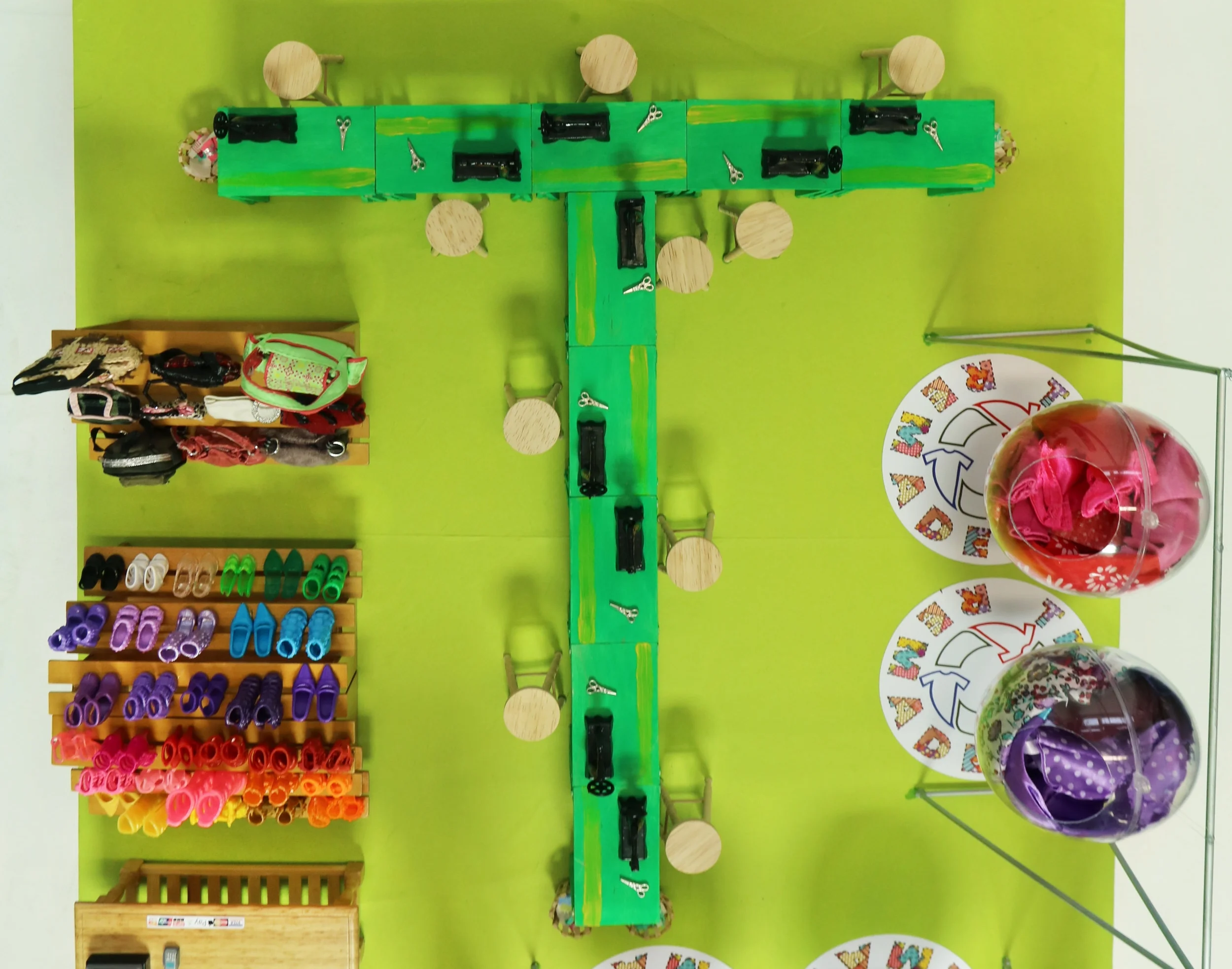TRAID Remade X HKDI Pop-up is to promote TRAID, TRAID Remade and secondhand clothes. Donations from the MTR stations be will sorted in colours, then placed in plastic transparent life-size baubles, hanging from recycled metal water pipes as other TRAID charity shops do. Other furniture such as shoe and handbag displays will use recycled wooden planks, also inspired by TRAID charity shops. The accessories will be displayed according to colours as well.